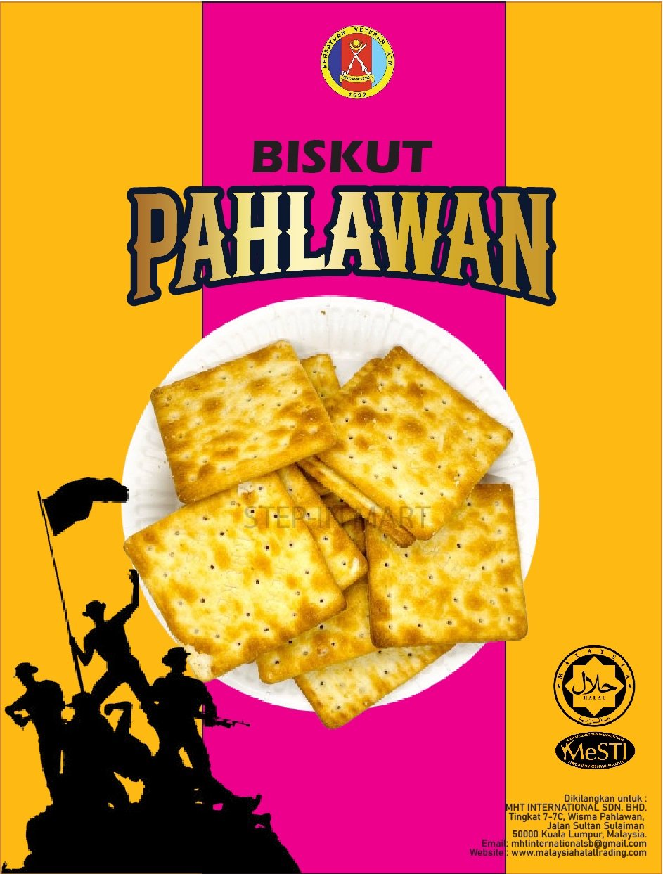 Akan Datang!. Biskut lemak Pahlawan. Dikeluarkan oleh kilang Muslim. 100% Halal.